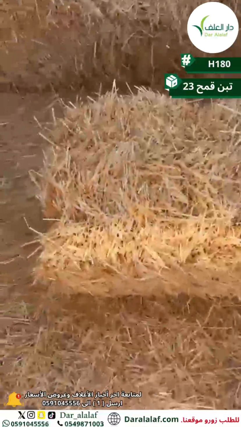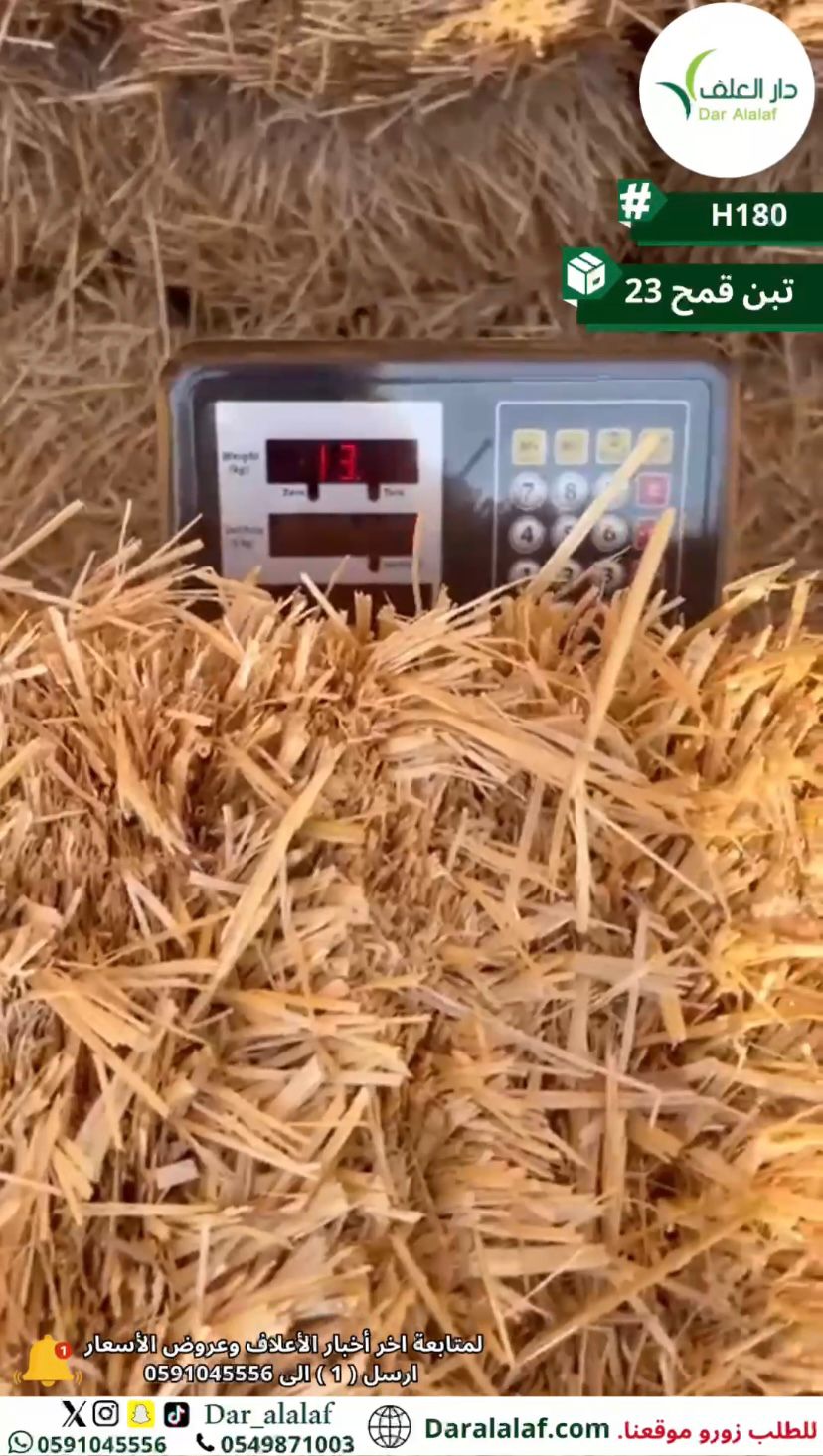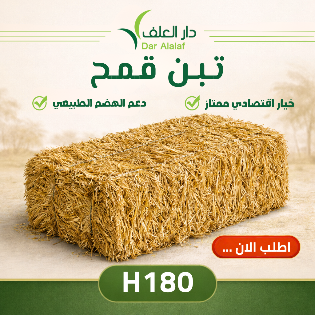 تبن قمح عالي الجودة يوفر للمواشي مصدرًا غنيًا بالألياف يساعد على تحسين عملية الهضم ودعم صحة الجهاز الهضمي بشكل طبيعي حيث تم تجهيزة بمواصفات دقيقة تناسب بيئة التربية في السعودية ليكون جزءًا أساسيًا من النظام الغذائي اليومي.